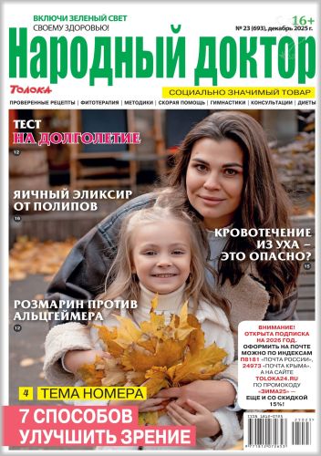 ![]() Журнал «Народный доктор» составлен из писем читателей, в которых они делятся испытанными рецептами здоровья, красоты и долголетия, рассказывают необычные истории исцеления. На страницах издания вы найдете народные и традиционные методы лечения и профилактики различных заболеваний, полезную информацию о лекарственных растениях. |