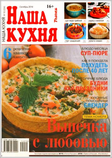 Популярный журнал о кулинарии. Основа каждого номера — проверенные рецепты блюд с фотографиями. С помощью «Нашей кухни» можно запросто составить меню на каждый день и для праздничного стола. С журналом «Наша кухня» процесс приготовления блюд превратится в удовольствие! Салаты и закуски, первые блюда и гарниры, сезонные заготовки, десерты, выпечка, блюда для малышей, страничка для юных поварят, идеи по украшению блюд, самые модные диеты, подробный кулинарный фотоинструктаж по приготовлению оригинального блюда, школа молодой хозяйки, кулинарные хитрости и советы от читателей — все это «Наша кухня». |
