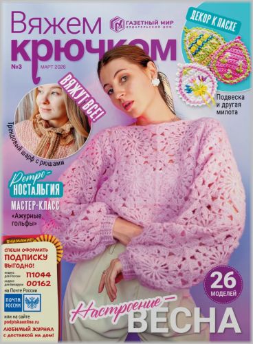 ![]() Издание для тех, кто предпочитает выглядеть модно, эксклюзивно и без особых затрат! Вяжем крючком - ваш спутник в мире вязаной моды, который вы создаете своими руками! Каждый месяц в журнале: * более 20 актуальных вязаных моделей разного уровня сложности для взрослых, детей и интерьера; * обучающий мастер-класс с пошаговыми фото; * новые узоры в вашу копилку; * понятные схемы, подробные инструкции, полезные советы; * знакомство с дизайнерами вязаной одежды, творческие конкурсы для читателей. |