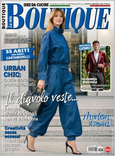 ![]() BOUTIQUE -–- журнал по шитью. В каждом выпуске около 40 моделей журнала La Mia Boutique, крупнейшего ежемесячного издания о моде в Италии. Для моделей, в зависимости от рубрики, предлагаются выкройки размеров – с 38-го по 54-й (размеры IT). Также есть специальный раздел с актуальной модой для детей. Все модели сопровождаются подробными инструкциями по шитью. |
