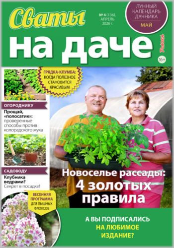 ![]() "Дачный клуб" - журнал для садоводов и огородников. Уникальный опыт российских дачников, яркие иллюстрации, вопросы читателей, рекомендации специалистов. Из журнала вы узнаете секреты большого урожая, как защитить растения от вредителей и болезней, идеи ландшафтного дизайна, рецепты народной аптеки, кулинарные тайны и многое другое. |