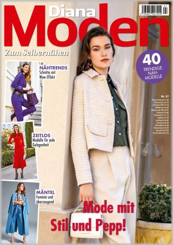С каждым новым сезоном мы чувствуем потребность пополнить свой гардероб новыми любимыми вещами. В этом выпуске Diana Moden представляет самые модные фасоны и базовые модели с оригинальными деталями и элегантными, но яркими цветами. Шикарная клетка: клетка Glen Check – хит сезона. Носите её в женственных фасонах и стильных сочетаниях. Наши комплекты из двух предметов придадут вам непринуждённую элегантность, идеально подходящую для офиса. Вас удивит разнообразие моделей наших пальто. Некоторые из них были созданы на подиуме и переосмыслены специально для вас. Не только разнообразие фасонов, но и разнообразие материалов, таких как искусственный мех, искусственная кожа, двусторонняя шерсть, ткань и многое другое, придают этим моделям неповторимую индивидуальность. Для размеров от 50 до 58 у нас есть платье-халат, два пальто, брюки и блузка. Для девочек от 4 до 8 лет вы найдёте здесь очаровательные платья с романтическими акцентами. Получайте удовольствие от выбора и пошива любимых вещей!
