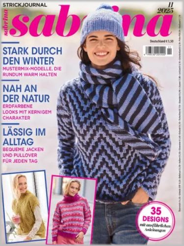 Начните думать о Рождестве уже сейчас! – и будьте к нему готовы как следует. Этот же девиз мы подобрали и для самых интересных моментов в новом выпуске журнала «Sabrina». Великолепные ажурные узоры в нежно-жёлтом цвете – как нельзя кстати. Связанные из высококачественной пряжи, они идеально подойдут для празднования Адвента и станут великолепным украшением рождественских каникул. Кроме того, в этом выпуске мы представляем вам вязаные свитера, кардиганы и уютные вязаные аксессуары, которые дарят радость каждый день. Вязаные изделия с разноцветными узорами разных оттенков синего – это глоток свежего воздуха, невероятно комфортные и пушистые. Предпочитаете естественный вид? Тогда вы будете чувствовать себя как дома в наших вязаных изделиях для улицы в земляных тонах. Удобные кардиганы и вязаные свитера с яркими, эффектными узорами дарят вам полную свободу движений. Здесь вы будете вязать не только скульптурные узоры с косами, скажем так. Как всегда, все модели вязания сопровождаются подробными инструкциями по вязанию и всеми соответствующими рисунками.