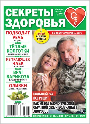«Секреты здоровья» — современный журнал о здоровье для читателей любого возраста - женщин и мужчин. Для всех, кто задумывается о том, как сохранить здоровье и продлить активную жизнь. Профилактика болезней, правильное питание, здоровые рецепты красоты, фитнес для любого возраста, психологический комфорт, здоровье детей — эти и другие темы - в каждом номере журнала.