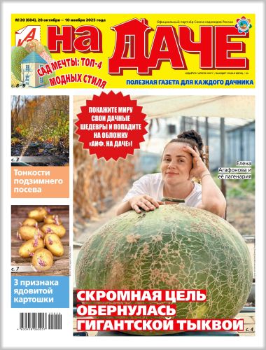 "Аиф. На даче" - полезное и интересное издание для всех, у кого есть приусадебный участок. Просто и доступно о саде, огороде, цветниках, пчелах, домашних животных. Практические рекомендации специалистов, уникальный опыт любителей, знакомство с новинками садового и цветочного мира.