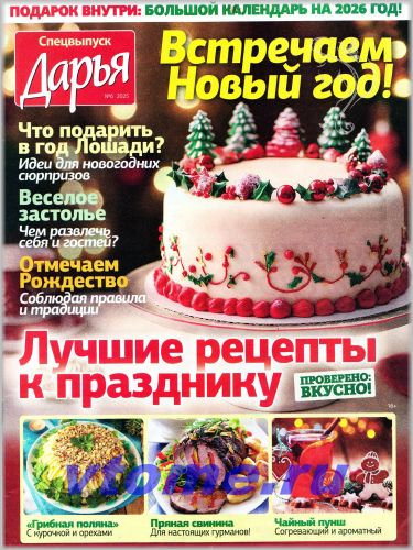Журнал для женщин. Полезные советы, вкусные рецепты, интересные истории в журнале "Дарья" - лучшей подруги всех женщин! Перед вами сборник лучших рецептов к празднику. В выпуске: салаты и закуски, сытное горячее, мировые шедевры, соусы к горячему, блюда к Рождеству, сладкое угощение и многое другое. Приятного аппетита!