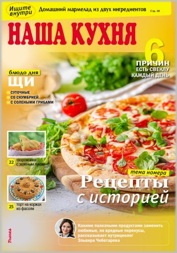 Популярный журнал о кулинарии. Основа каждого номера — проверенные рецепты блюд с фотографиями. С помощью «Нашей кухни» можно запросто составить меню на каждый день и для праздничного стола. С журналом «Наша кухня» процесс приготовления блюд превратится в удовольствие! Салаты и закуски, первые блюда и гарниры, сезонные заготовки, десерты, выпечка, блюда для малышей, страничка для юных поварят, идеи по украшению блюд, самые модные диеты, подробный кулинарный фотоинструктаж по приготовлению оригинального блюда, школа молодой хозяйки, кулинарные хитрости и советы от читателей — все это «Наша кухня».