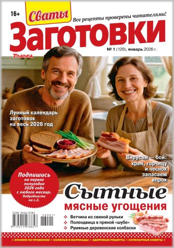 «Сваты. Заготовки» - ежемесячное издание, посвященное теме заготовок! Более 100 рецептов заготовок от Сватов в каждом номере: соленья и маринады, салаты и ассорти, соусы и приправы, заготовки к сезону, сладкие заготовки, напитки, винный погребок, мясные деликатесы, здоровые рецепты, целебные заготовки, дачные хлопоты, правила хранения, а также кроссворды и сканворды для досуга.