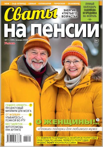 Со "Сватами на пенсии" – все только начинается! Больше 1000 советов пенсионерам! В каждом номере журнала – советы на все случаи жизни от читателей, юристов, медиков, психологов, экспертов, секреты здоровья и красоты, кулинарные рецепты, секреты рукоделия и домоводства, разнообразный досуг.