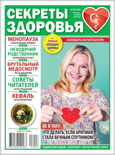 «Секреты здоровья» — современный журнал о здоровье для читателей любого возраста - женщин и мужчин. Для всех, кто задумывается о том, как сохранить здоровье и продлить активную жизнь. Профилактика болезней, правильное питание, здоровые рецепты красоты, фитнес для любого возраста, психологический комфорт, здоровье детей — эти и другие темы - в каждом номере журнала.