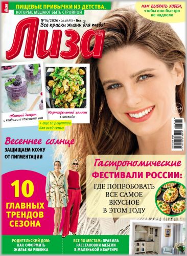 Самый популярный в России еженедельный журнал для женщин «Лиза»! Фитнес со звездой и звездный макияж, уроки стиля и самые горячие новости из жизни кумиров. А еще – модный шопинг, актуальная мода, новинки косметики и великолепные идеи для дома. Романтические истории о настоящей любви и рассказы читательниц о разных жизненных ситуациях и многое другое.