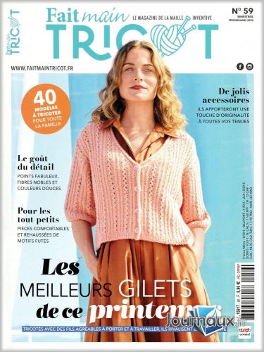 "Fait Main Tricot" - известный французский журнал поможет создать модный трикотажный гардероб для всей семьи. Журнал представляет стильные сезонные коллекции: весна, лето, осень, зима. Все модели сопровождаются подробными инструкциями, точными схемами и выкройками, имеют широкий размерный ряд - от S до XXL для взрослых и для детей от 0 до 14 лет. Модели имеют разный уровень сложности и предназначены как для начинающих, так и для опытных вязальщиков.