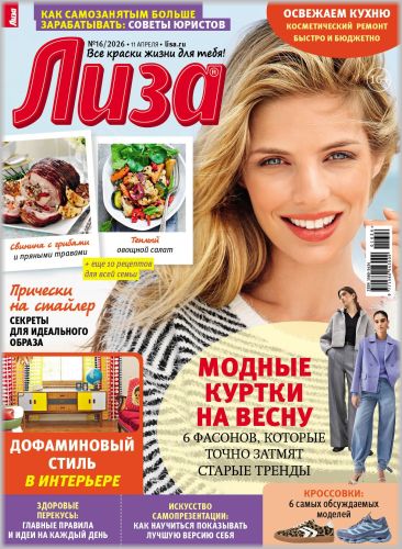Самый популярный в России еженедельный журнал для женщин «Лиза»! Фитнес со звездой и звездный макияж, уроки стиля и самые горячие новости из жизни кумиров. А еще – модный шопинг, актуальная мода, новинки косметики и великолепные идеи для дома. Романтические истории о настоящей любви и рассказы читательниц о разных жизненных ситуациях и многое другое.