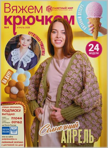 Издание для тех, кто предпочитает выглядеть модно, эксклюзивно и без особых затрат! Вяжем крючком - ваш спутник в мире вязаной моды, который вы создаете своими руками! Каждый месяц в журнале: * более 20 актуальных вязаных моделей разного уровня сложности для взрослых, детей и интерьера; * обучающий мастер-класс с пошаговыми фото; * новые узоры в вашу копилку; * понятные схемы, подробные инструкции, полезные советы; * знакомство с дизайнерами вязаной одежды, творческие конкурсы для читателей.