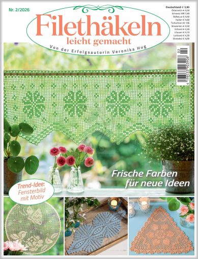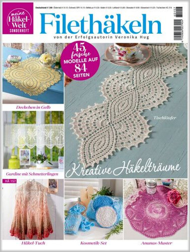В этом журнале мы снова тщательно собрали для вас самые красивые идеи для вязания крючком. Это шторы, которые предлагаются на выбор в трех разных вариантах дизайна. Великолепная вязаная шаль, связанная всего из одного мотка пряжи с градиентным переходом цвета или большая круглая скатерть и набор различных дорожек. Многочисленные вязаные салфетки, уникальные узоры которых всегда вдохновляют на их создание. Позвольте себе соблазниться! Погрузитесь в весенне-летнее вязание крючком! Также вы найдете синие занавески с красивыми морскими мотивами, такими как дельфины и морские коньки, небольшие аксессуары для ванной комнаты, такие как косметические подушечки, мешочки для мыла и салфетки, геометрически оформленные скатерти-дорожки и, конечно же, классические вязаные салфетки с цветочными узорами, которые с любовью подходят для этого хобби и дарят новое вдохновение. Если мы вас заинтересовали - надеемся, вам понравится наш ассортимент. Вы наверняка будете впечатлены не только цветами, но и разнообразием форм и узоров.