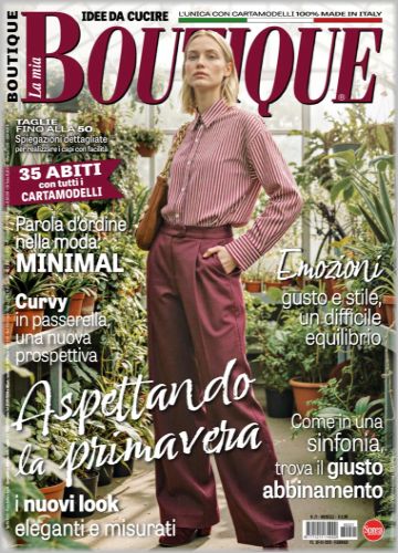 BOUTIQUE -–- журнал по шитью. В каждом выпуске около 40 моделей журнала La Mia Boutique, крупнейшего ежемесячного издания о моде в Италии. Для моделей, в зависимости от рубрики, предлагаются выкройки размеров – с 38-го по 54-й (размеры IT). Также есть специальный раздел с актуальной модой для детей. Все модели сопровождаются подробными инструкциями по шитью.