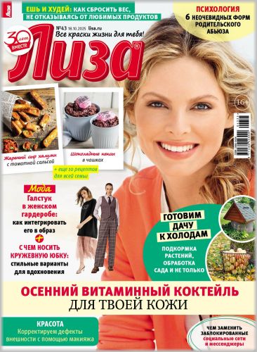 Самый популярный в России еженедельный журнал для женщин «Лиза»! Фитнес со звездой и звездный макияж, уроки стиля и самые горячие новости из жизни кумиров. А еще – модный шопинг, актуальная мода, новинки косметики и великолепные идеи для дома. Романтические истории о настоящей любви и рассказы читательниц о разных жизненных ситуациях и многое другое.